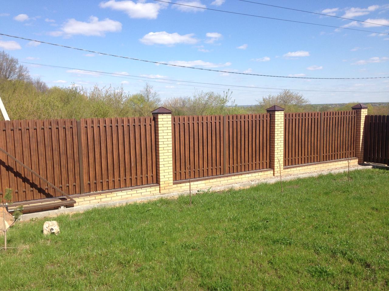 Заборы и ограждения из евроштакетника с кирпичными столбами 200 метров в Кашире