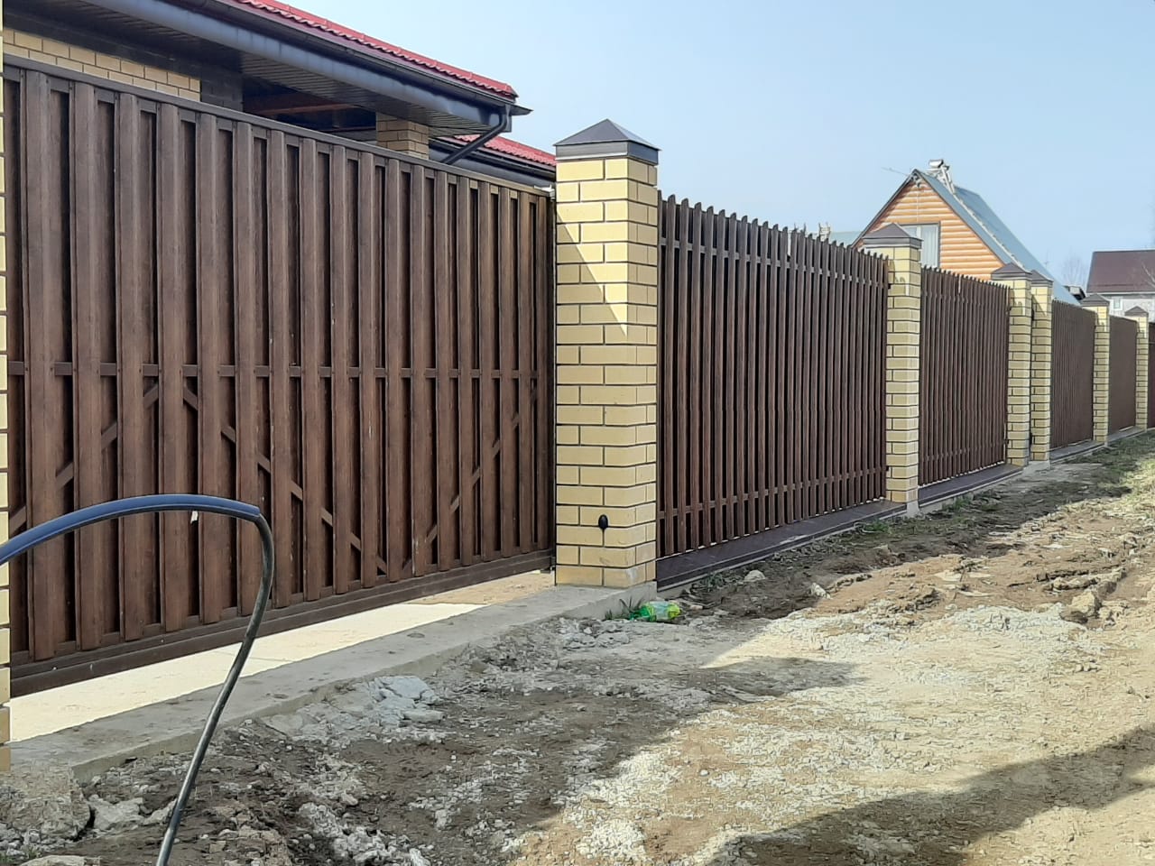Заборы и ограждения из евроштакетника с кирпичными столбами 300 метров в Кашире
