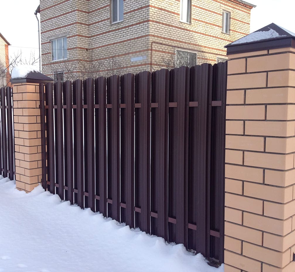 Заборы и ограждения из евроштакетника с кирпичными столбами 90 метров в Кашире