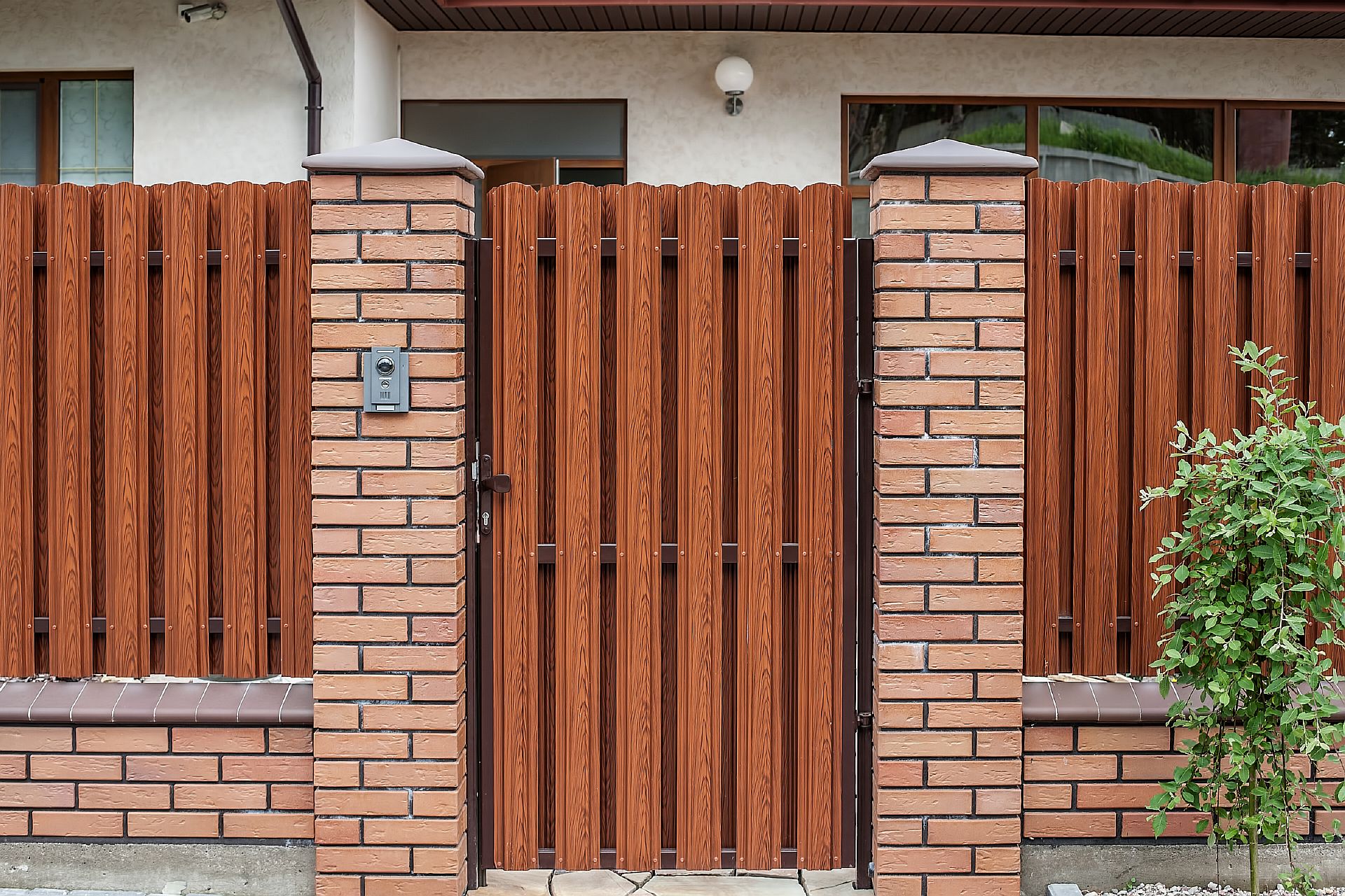 Заборы и ограждения из евроштакетника с кирпичными столбами 15 соток в Кашире