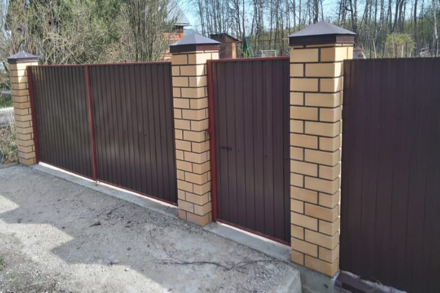 Заборы и ограждения из профнастила с кирпичными столбами 300 метров в Кашире