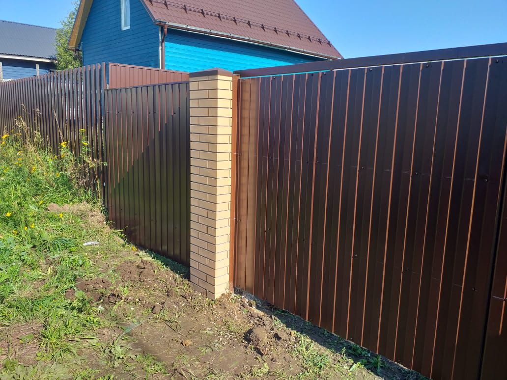 Заборы и ограждения из профнастила с кирпичными столбами 50 метров в Кашире