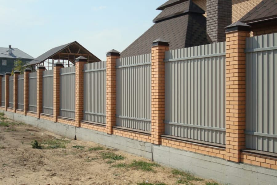 Заборы и ограждения из профнастила с кирпичными столбами 6 соток в Кашире