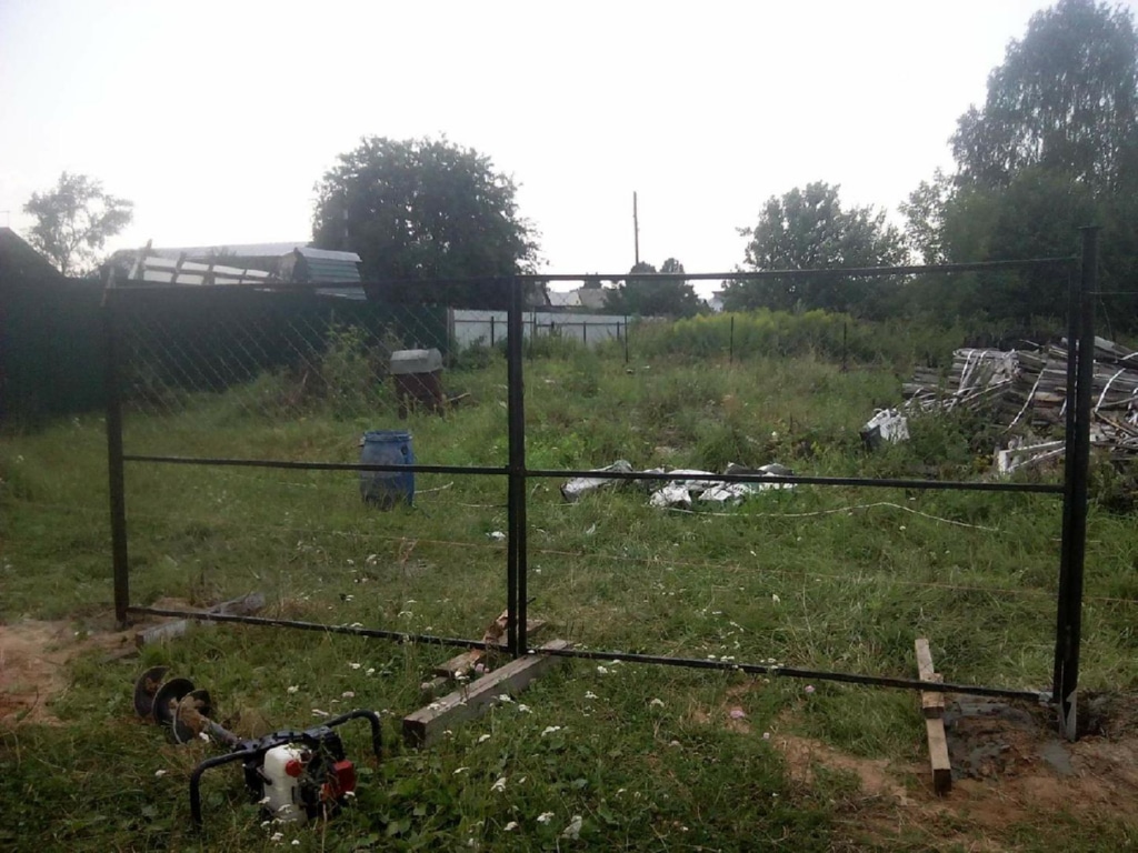 Забор из сетки рабица с бетонированием столбов 8 соток в Кашире