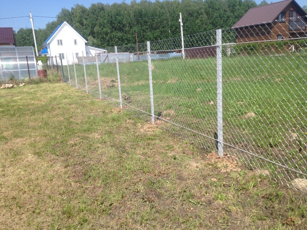 Забор из сетки рабица с протяжкой арматуры 15 соток в Кашире
